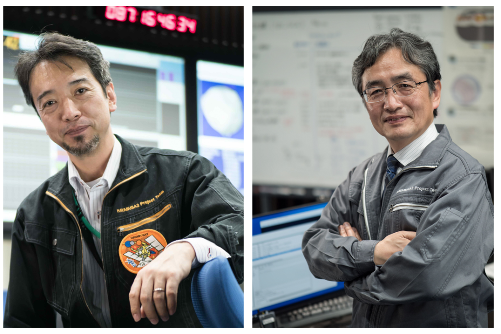 「はやぶさ2」カプセル回収のために、オーストラリアに滞在中のサブマネージャの中澤暁さん(写真左)が現地から講演を行う予定です。また、相模原からはミッションマネージャの吉川真さん(写真右)が話をする二元中継のWEB講演会となります。