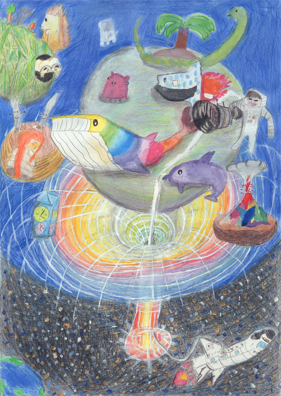 ぼくが、もし宇宙飛行士になったらブラックホールに入ってなにがあるか見てみたいです。そこには、水の星、山の星、草の星、時計塔、パンケーキの星とかあるとイメージしていました。