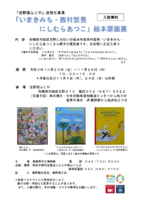 相模原市緑区吉野にお住いの絵本作家西村繁男・いまきみち・にしむらあつこさん親子の展覧会です。お気軽にお立ち寄りください。