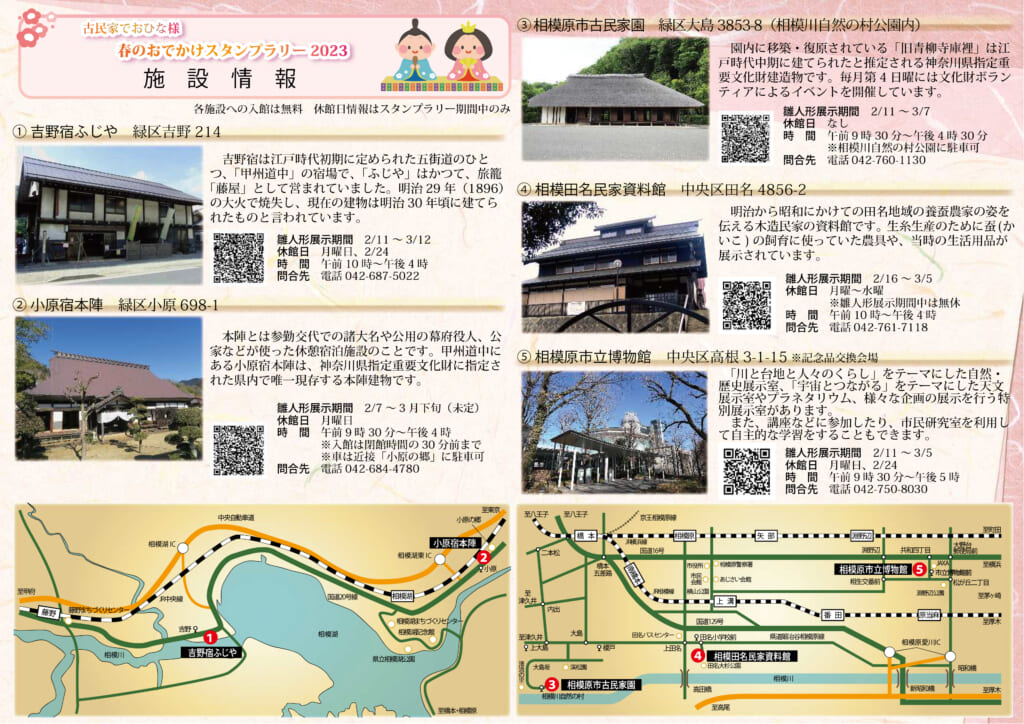 また、相模田名民家資料館のスタンプラリー期間中の休館日情報は通常公開日と異なります。