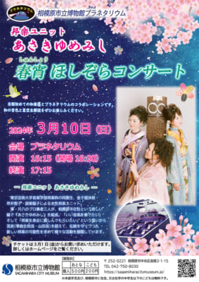 和楽器の生演奏の音色とともに、県内最大級・直径23メートルのプラネタリウムに映し出される満天の星や映像のコラボレーションを楽しめるコンサートです♪