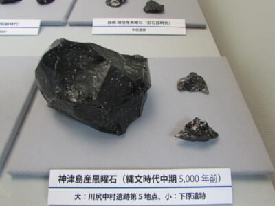 市内の遺跡から出土した黒曜石を展示していますので、ぜひご覧ください。