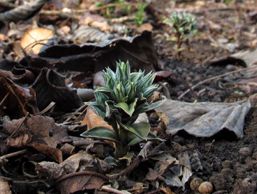 実際、今年は植物の動きが全体的に少し遅いようです。博物館の隣の林には、毎年たくさんのフデリンドウが咲きます。例年3月の末から咲き始め、4月に入ると遠目にも目立つようになり、中旬には数え切れないほどの花が咲き乱れます。しかし、今年は3月30日の時点でまだ1輪も咲いていません。やっとちらほらと、つぼみが伸びてきたところです。