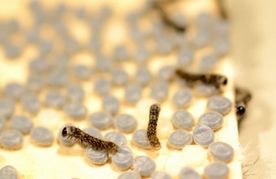 さらに、カイコはふ化の日にちをほぼ正確に調整することができます。休眠したカイコの卵を低温下に置いたのち、酸に浸けるなどの処置を施すことにより、休眠が打破されて発生が再開されるのです。この技術は、江戸時代から行われていました。