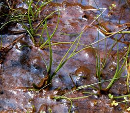 絶滅危惧種は、特殊な場所にばかりあるわけではありません。この休耕地には、ほかにもミズニラ(ミズニラ科:絶滅危惧1B類)が生育しています。この植物は水性のシダ植物なので、花すら咲きません。よくよく注意して探さないと見過ごしてしまいます。