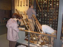 №1展示作業も市民の手によって行われた。鍬の固定具を外すのは大変だった