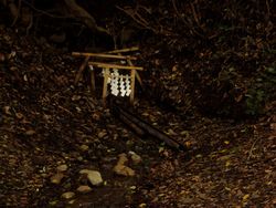 勝坂遺跡段丘下の有鹿神社の湧水。今でも海老名の有鹿神社の神職や氏子が4月に訪れてここから水を汲む
