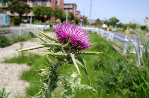 2010年5月、このアンテナがすごい外来植物の情報をキャッチしました。オオアザミというキク科の植物です。日本に渡来した歴史は古いのですが、神奈川県ではまだ野外の記録がありませんでした。それが横浜市の西のはずれ、相模原市からも近い場所に堂々と咲いているというのです。早速行ってみると、遠目にもわかる大きな株がありました。