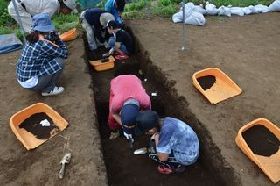 発掘調査には中央大学をはじめ諸大学の学生や他自治体教育委員会の埋蔵文化財担当職員、相模原市立博物館の市民ボランティアの方々が参加しました。