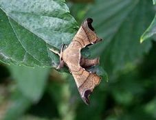 せっかくなので、クワコの成虫も見てみましょう(写真7)。野生に生き、もちろん飛翔可能なシャープな体の線、複雑でメリハリのある翅模様。野趣と表現すればよいでしょうか。モコモコしてぬいぐるみのようにかわいらしいカイコの成虫(写真8、9)と対照的な、野性味あふれるクワコも私は好きな昆虫のひとつです。 (生物担当 秋山幸也)