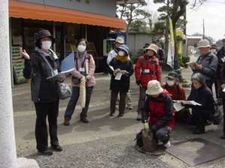 神社や寺院・石仏など、地域に残るさまざまなものをすべて取り上げることは分量の関係からも当然不可能で、その中から何を選び出し、どのような説明を付けるか、相当に頭を悩ませました。また、両ルートともに半日程度で歩けるものとして、負担の少ないコース設定も考えなければなりませんし、地図化に当たっては例えばトイレの位置なども確認しなければなりません。 このようなことを頭に入れながら数回のフィールドワークを行い、いろいろな苦労や工夫を加えてようやく完成したもののうちの南部ルートを歩いたのが3月14日(水)の民俗探訪会です。
