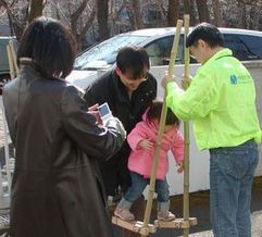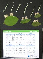 年末ということもあり、2012年のカレンダーを落ち葉でデコレーションする工作が、この日のメニューです。事前にさまざまな形や色の落ち葉を調達したのも、調査会のみなさんです。当日は都合で参加できないからと、たくさんの落ち葉を持参してくれた方もいました。