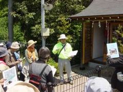 平成23年度及び24年度の「ボランティアの窓」でも紹介しているように、当館の民俗分野の市民の会である民俗調査会Aの活動として5月と11月に「民俗探訪会」を計画していますが、さる平成25年5月8日(水)第3回目の「民俗探訪会」を下溝地区で行いました。今回のコースは、麻溝観光協会が発行した「歩いて楽しむ あさみぞ探訪マップ」の「川めぐりコース」を民俗調査会としてアレンジしたもので、民俗調査会の会員の中に下溝在住で「あさみぞ探訪マップ」の作成にも携わった方が何人かおられたこともあり、その知識や経験を生かして実施することを計画しました。