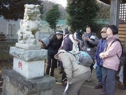 その中では、横浜市歴史博物館の民俗に親しむ会も展示に深く係わり、会員が関心を持ったテーマを展示に組み込むとともに、会員それぞれが書いた資料報告やレポートをまとめた150頁以上にも及ぶ冊子(『歩いた・見た・調べた 横浜市歴史博物館民俗に親しむ会 鶴見川流域フィールドワーク調査報告』)も刊行されました。この冊子には本館の民俗調査会が調べて提出した、鶴見川支流の恩田川流域の本町田・高ヶ坂・南大谷・成瀬地区の神社境内の狛犬と石造物の石工(石工銘が彫られていれば狛犬に限りません)のデータも含まれており、流域の石造物の様相を明らかにすることにお役に立つことができました。
