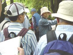 毎回、本欄の「ボランティアの窓」でも紹介しているように、本館の民俗分野の市民の会である民俗調査会Aの活動として5月と11月に「民俗探訪会」を実施しており、今年度も5月14日(水)に第5回目の「民俗探訪会」を行いました。今回は、上溝地区の南部から下溝北部にかけて歩くもので、こうした催しはどうしても同一の地域内を歩くものになりがちですが、今回は中央区上溝から南区下溝へというように、区をまたいで歩くというコースを設定しました。 4月15日号「広報さがみはら」や博物館のホームページで会員以外の市民の皆様からの参加者を募集したところ、40名以上の方からの応募があり、野外を数時間歩くという安全性の観点から抽選となりました。当日は、28名の参加者と会員11名で、相模線の番田駅から「相模原浄水場」バス停まで、約3時間のコースを歩きました。当日は暑さが心配されたものの、通り抜ける風はまだまだ気持ちよく、無事に実施することができました。
