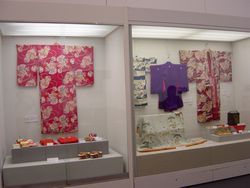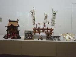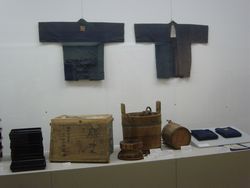 この福の会が展示資料の選定から実際の展示作業も担当した収蔵品展「蔵の中の世界2~市民の力で博物館資料へ~」を、5月24日(土)から6月29日(日)までの会期で行っています。今回は、福田家の蔵にあった実に多くの衣類やお節供に贈られた三月人形(御殿飾り)などに加え、福の会が福田家資料の整理とともに開始している別の資料についても展示しています。例えば、福田家がある南区下溝・新屋敷地区で所有していた講中道具一式で、講中道具はかつて冠婚葬祭を自宅で行っていた時代に、訪れる多くの客に出す料理の食器やその他の諸道具を地区で共同保管し、必要に応じて各家で使うことができたもので、講中道具は市内及び周辺地域で一般的に見られました。また、近年まで南区当麻の中・下宿地区で行われていた地神講と稲荷講に関わる資料では、講が解散することに伴い、掛軸や帳面などの資料が長く後世まで残ることを願って博物館に寄贈いただきました。なお、昨年の展示でも実施した、福田家の御当主や福の会の会員が、整理作業の苦労や楽しさなどを交えて展示資料についてお話をしたり、いくつかの衣類に触れたりすることもできる「展示説明・展示を語ろう」を6月8日・6月22日(いずれも日曜日)の午前10時30分~午後3時30分(この間随時)に行いますので、ご希望の方は是非おいでください。