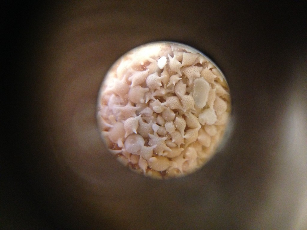 星の砂は、星の形をした有孔虫の殻が堆積したものです。キーホルダー型顕微鏡でのぞいてみると、形もはっきり見えますよ。