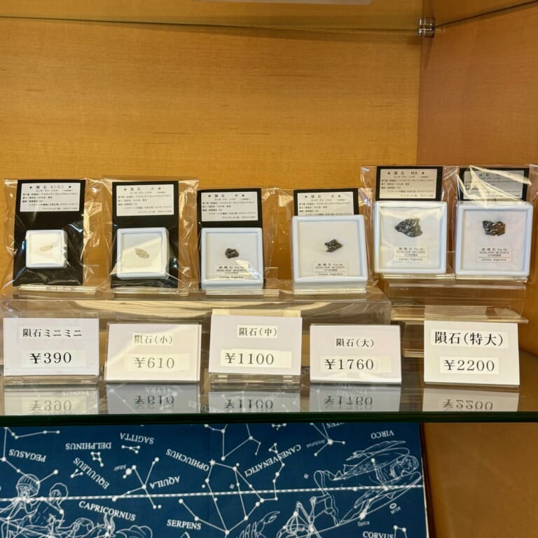 宇宙や自然、歴史などに興味がわく、興味が深まるようなグッズがいろいろありますので、ご来館の際はぜひご覧ください。なお、カプセルトイの内容は不定期に変わりますので、予めご了承ください。