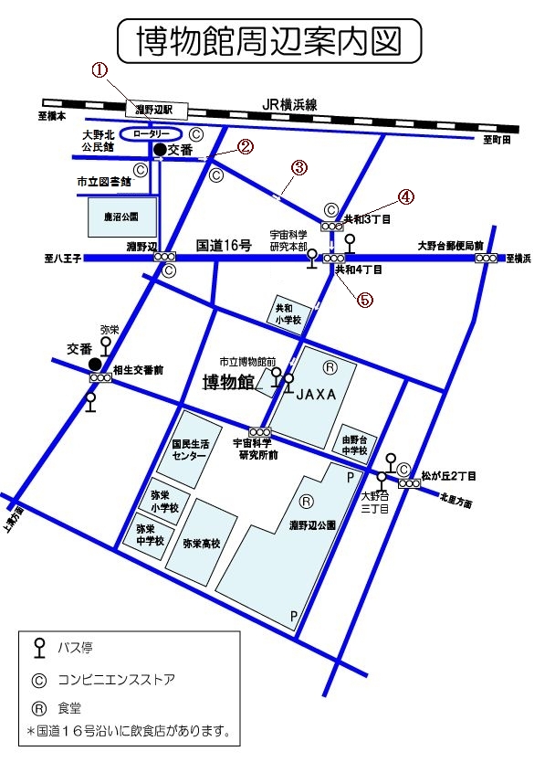 淵野辺駅から相模原市立博物館まで、徒歩コース(20分程度)のご案内