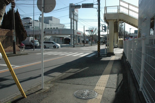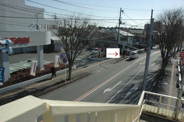 三叉路を右方向(ちょうど矢印が示す方向)に進みます。1分ほど歩きますと、国道16号にでます。 (次の写真)